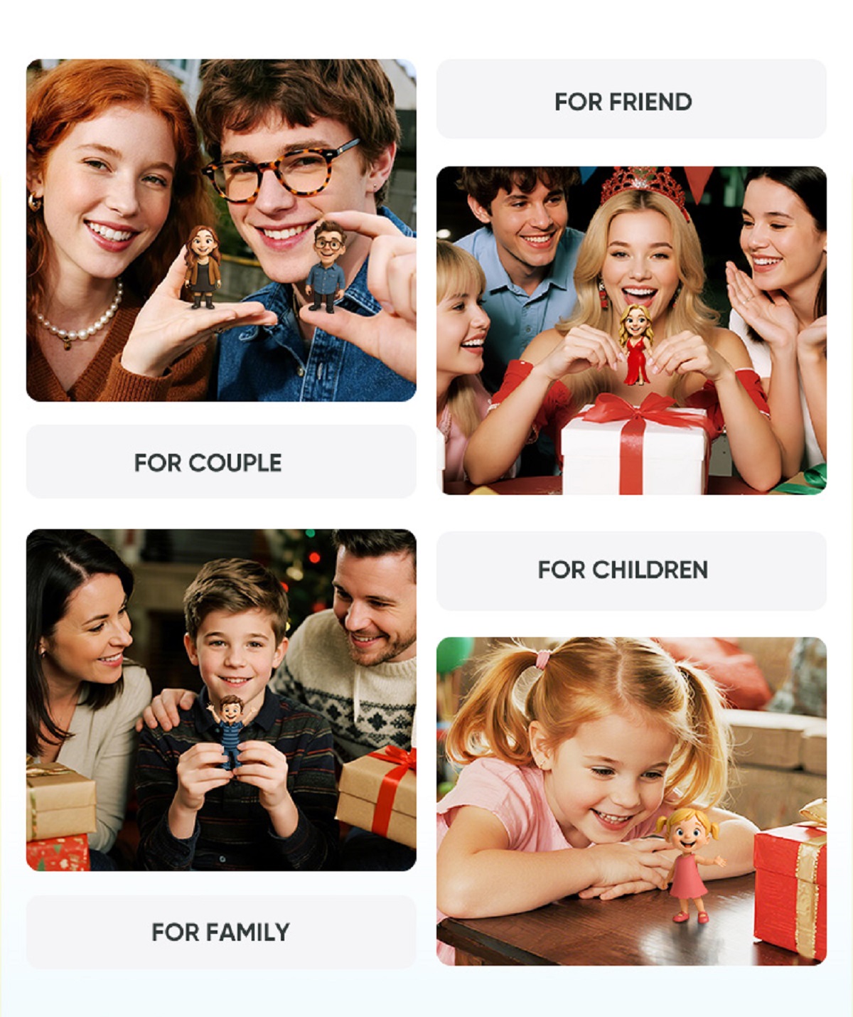 • 100% Personalized – Upload a photo, and we’ll recreate it as a cute 3D figurine.